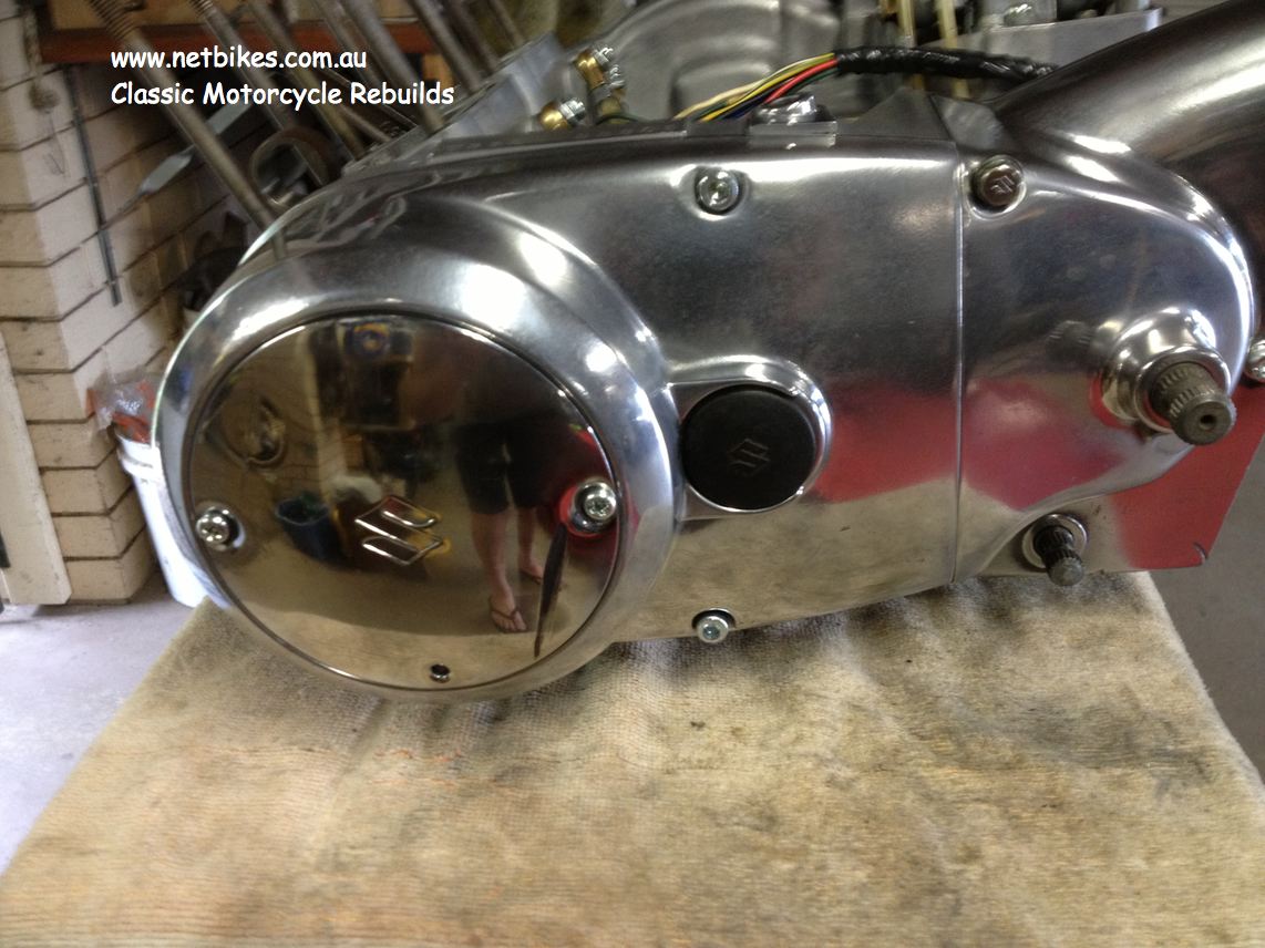 Everything used will be renewed, repainted, rechromed etc. It will be for sale when complete. Parts used in the bike will range from 1969 to 1972 and some parts not originally used on T350's. If you have a interest in purchasing this bike please call me on 0422 819 200. Bike is at Mt.Gravatt East Brisbane Australia. =================== I'll start with the engine, it is from a 71 model, stripped bare, cases blasted, the botton case was painted in epoxy silver to make for easy cleaning.