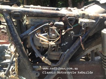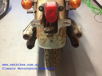 This bike came from a fellow VJMC member, as you can see it still needs a tidy up :). It will be a slow rebuild as I have other bikes I am working on as well. Life began for this bike as a police bike, I will be doing a mild special with it such as low bars and a single seat with retro paint work, maybe sparkle gold with maybe some air brush art. The wheels are Henry Abe.