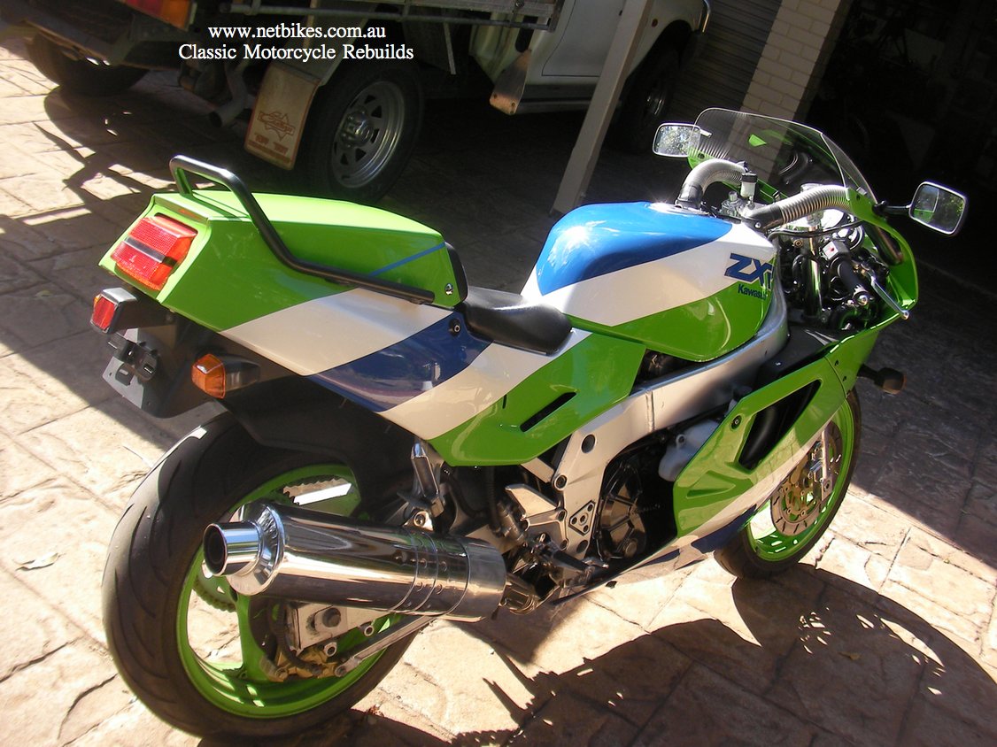 Almost done now, need to buy a screen, a couple more rubber bits for under the tank, a better muffler and sort the decals out, think that's about it. It's looking good, well to me anyway:-). There are still some other minor details to fix, like touch up the very lower line of the tank and some marks on the frame, find that little rubber cover for the right hand air hose clamp, so please, if you have one in your shed you know who can use it, and don't all those little things cost a buck or two, I have replaced almost all the rubber fairing inserts, small screws, clips etc etc with new genuine in sealed packets Kawasaki parts at a cost of almost $300.00.