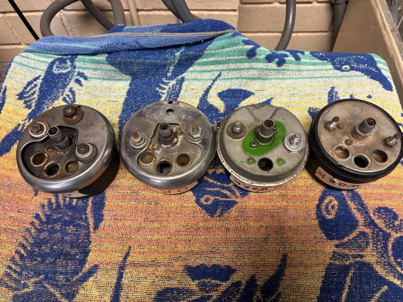 The speedo and taco on the right are not working and are for repair or parts, $10 each.